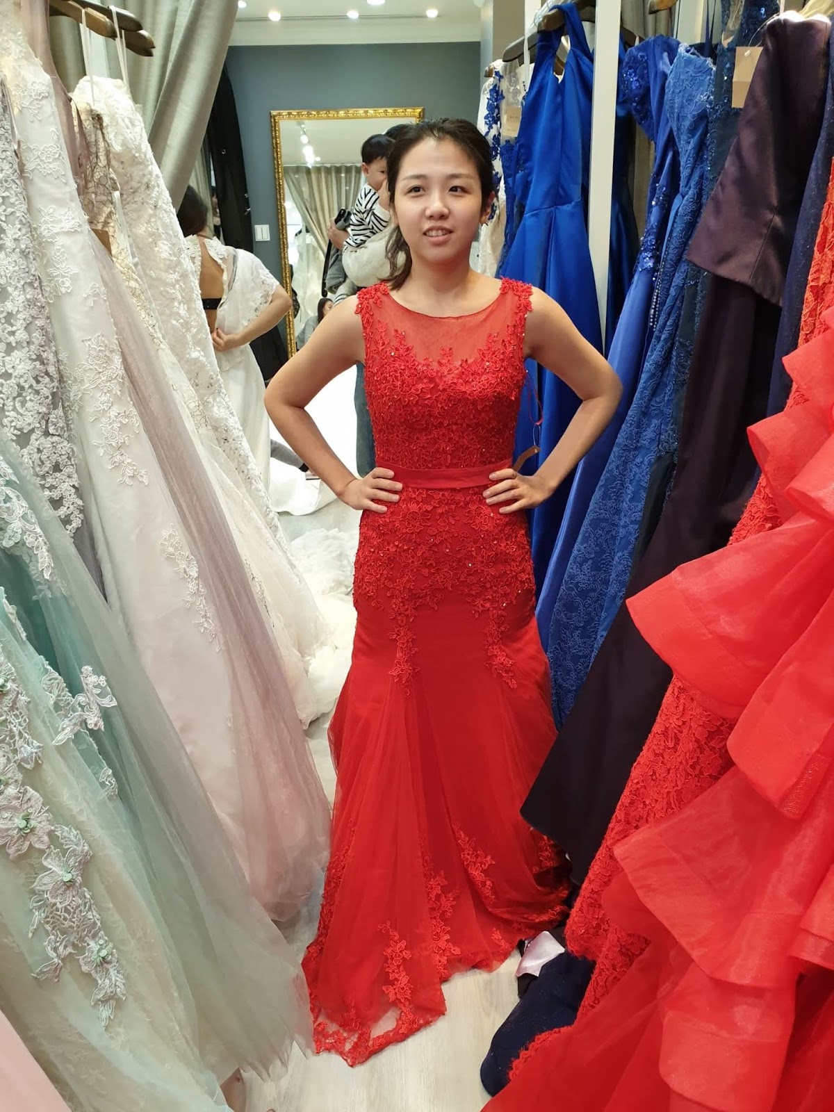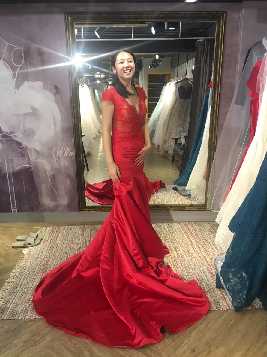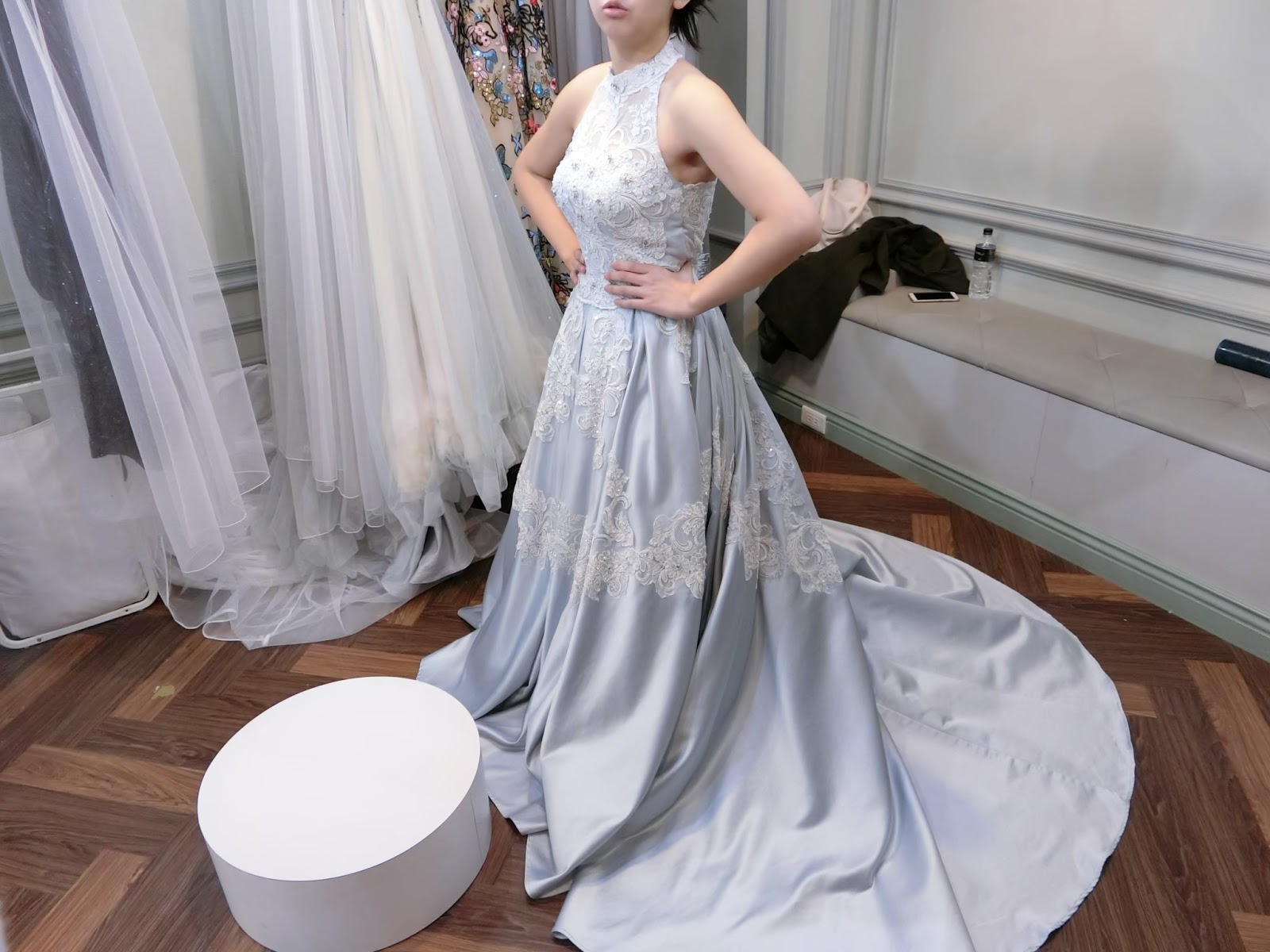 小秘書人很好,她自己也快要結婚了,所以也分享自己挑婚紗的因素,我有挑中一件晚禮服,但是沒有挑到白紗,所以放棄。不過新開的店,衣服質感都還可以,價錢也不貴喔。
