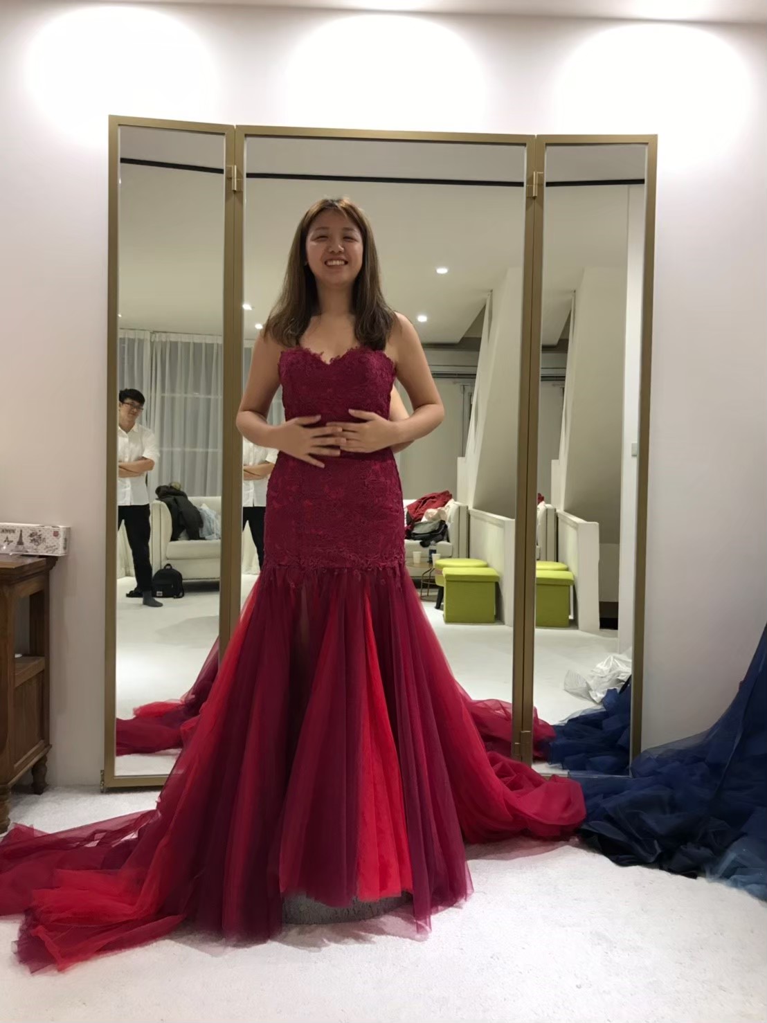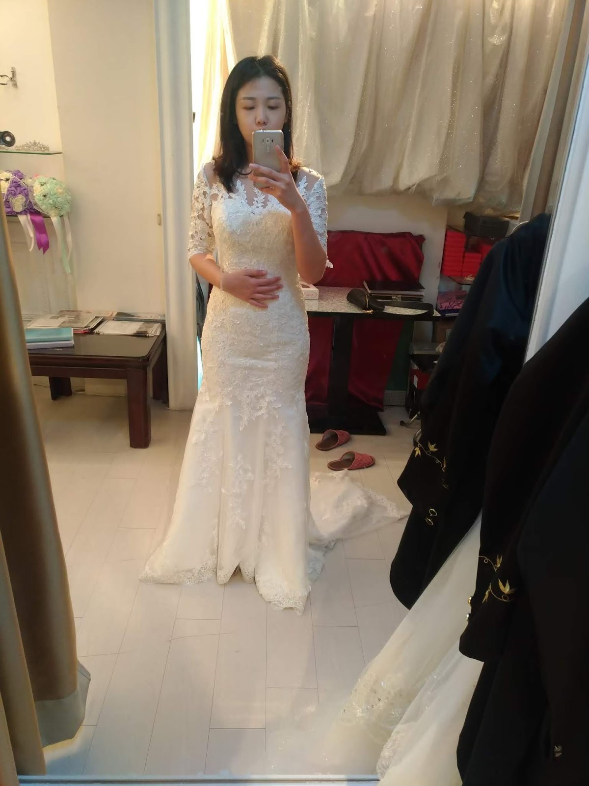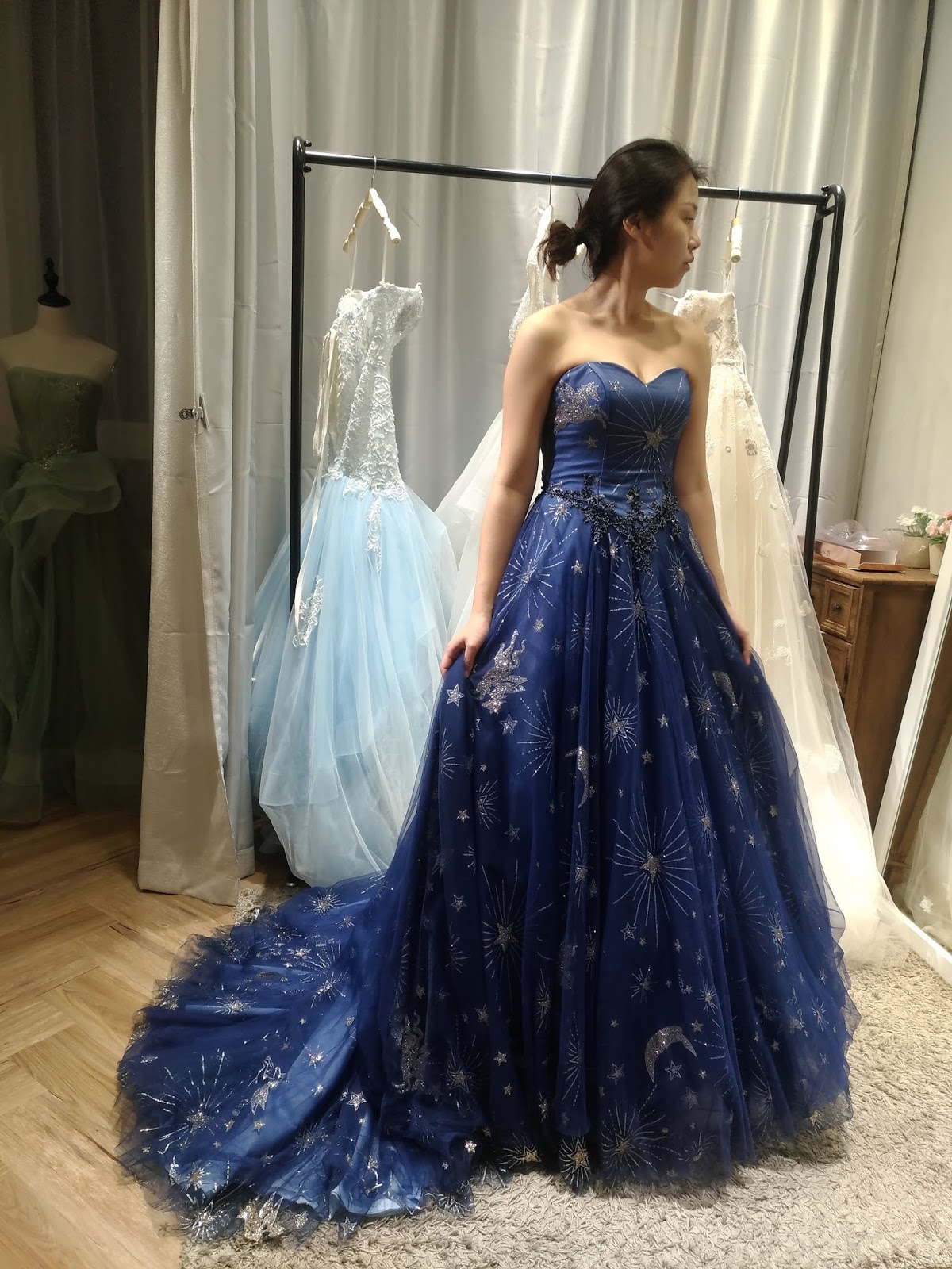 小秘書人很好,她自己也快要結婚了,所以也分享自己挑婚紗的因素,我有挑中一件晚禮服,但是沒有挑到白紗,所以放棄。不過新開的店,衣服質感都還可以,價錢也不貴喔。