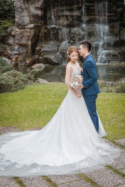 小拖擺,很適合戶外婚禮,而且也比較好走喔! 不用其他人幫忙拿,照片畫面感也好很多 |